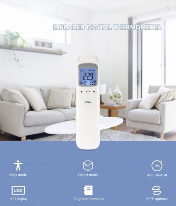 ترمومتر JOYROOM رقمي بالأشعة تحت الحمراء قراءة سريعة شاشة LCD وظيفة الذاكرة