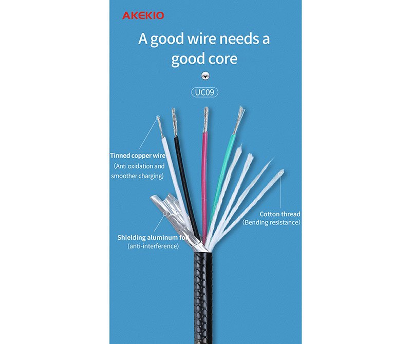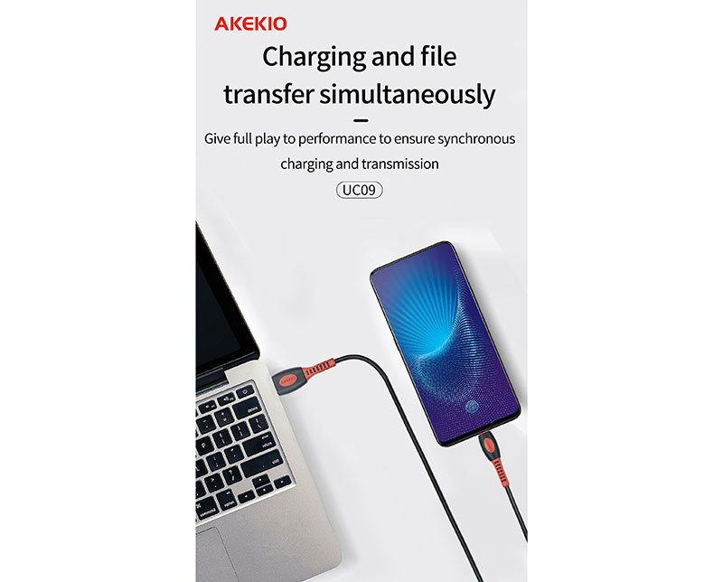 كابل شحن ومزامنه AKEKIO متوافق مع كافة الاجهزة ذات مدخل يو اس بي سي بطول 1 متر – UC09
