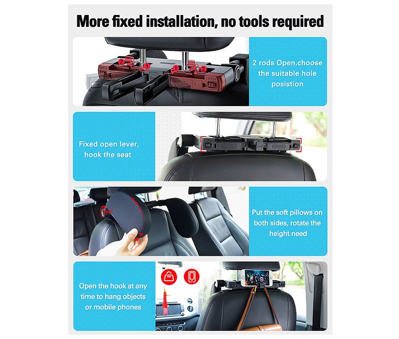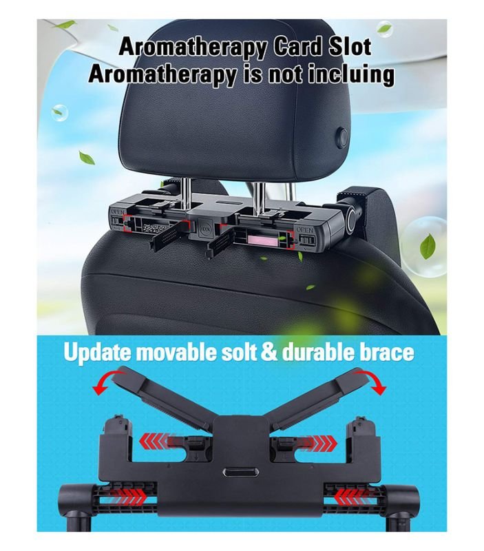 وسادة ومسند رأس لمقعد السيارة مع وسادة ناعمة من الجلد على كلا الجانبين وخطاف قابل للسحب وفتحة للعطر