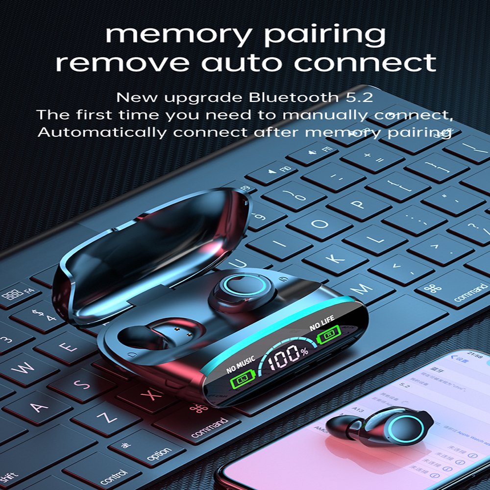 ايربودز رياضية تعمل باللمس مقاومة للماء شاشة LED بها باور بانك داخلي بالاضافة الي مؤشر رقمي – V5.2 / موديل M38