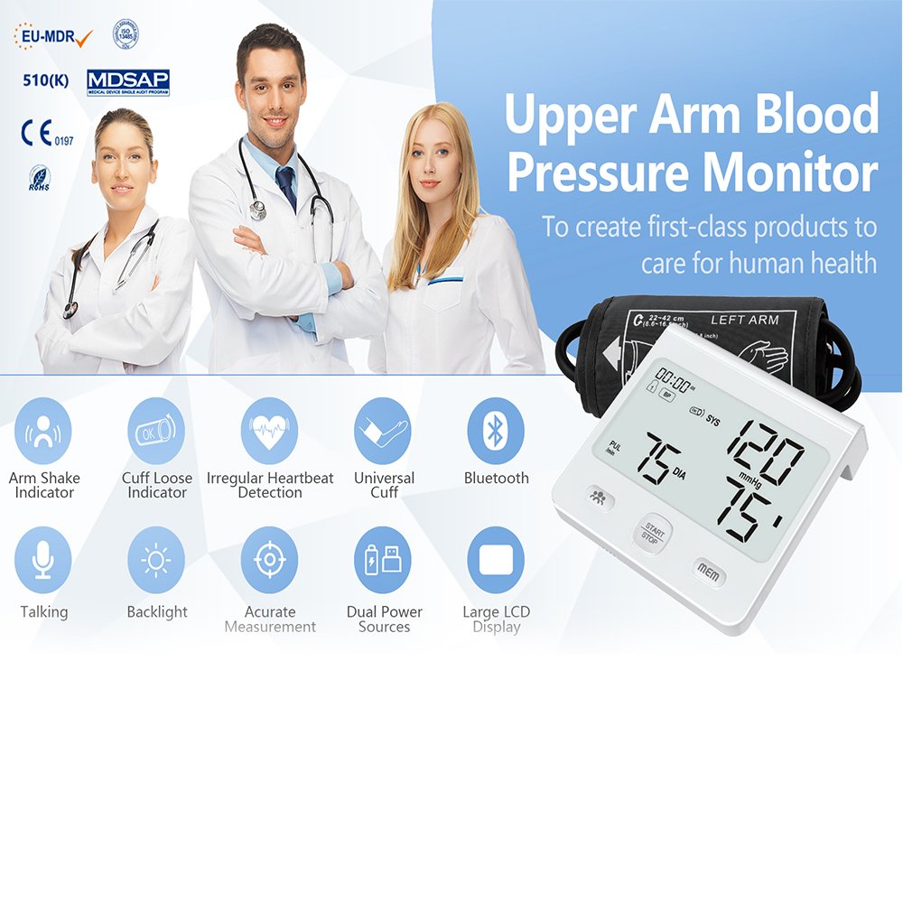 – نطاق القياس: الضغط الانقباضي 60 مم زئبق – 260 مم زئبقي / الضغط الانبساطي 30 مم زئبق – 200 مم زئبق / النبض 30 ~ 180 نبضة / دقيقة