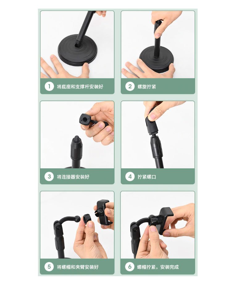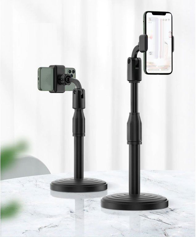 حامل مكتبي بقاعدة معدن للبث المباشر والتصوير الاحترافي قابل للتعديل مع استدارة 360 درجة مع حامل للموبايل متوافق مع جميع الأجهزة