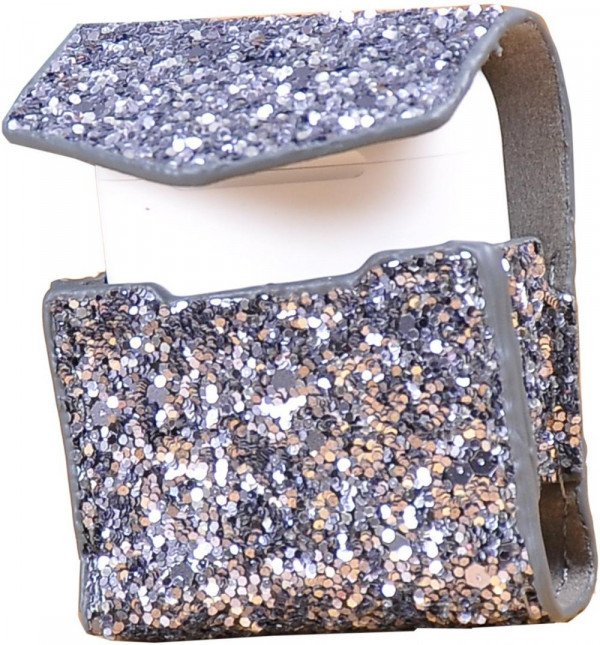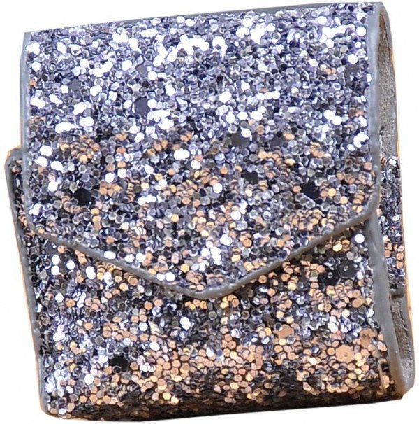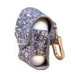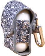 حقيبة وواقي حماية لسماعات ابل ايربودز من الجلد المغطي بالجليتر بشنكل لون فضي