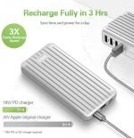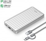 زندور باور بنك 10000 ملي امبير 18 وات فائق النحافة PD+QC3.0 لجميع اجهزة الموبايل واجهزة ماك بوك لون فضي