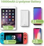 بطارية ليثيوم بوليمر 10000mAh: تشحن البطارية عالية الكثافة iPhone X 2.5 مرة ، iPhone 8 3 مرات ، iPad 1 مرات ، أو Galaxy S9 مرتين.