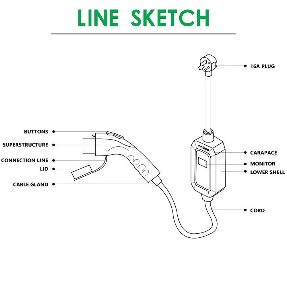 شاحن سيارة كهربائي محمول لجميع السيارات التي تشحن بالكهرباء 3.5 كيلو واط – 16 امبير 250 فولت – 10 متر / موديل D16A