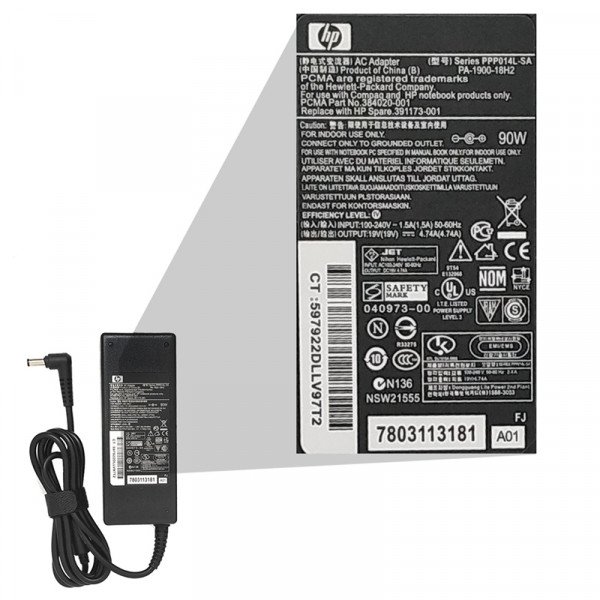 شاحن لاب توب اتش بي عالي الجودة 19 فولت 4.74 امبير 90 وات – مقاس السوكت 5.5*2.5 مم