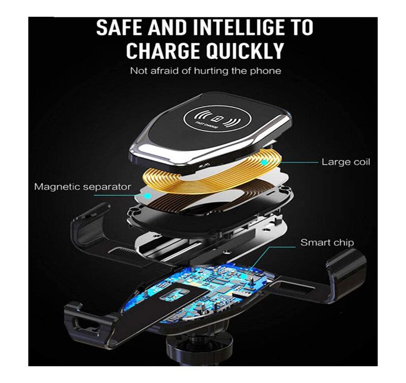 شاحن لاسلكي وحامل للهاتف متوافق مع السيارة متوافق مع جميع الهواتف التى تشحن لاسلكي