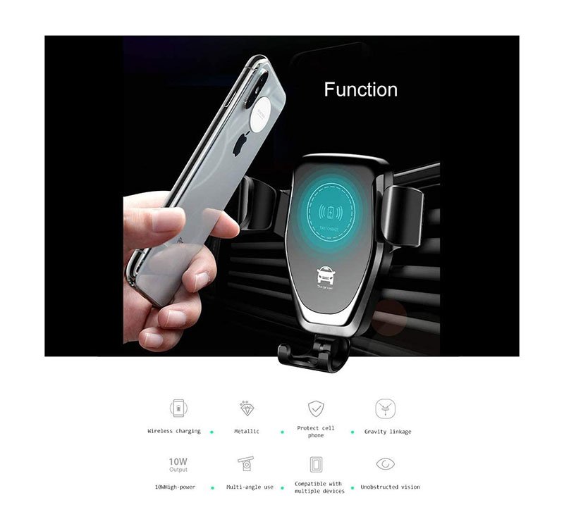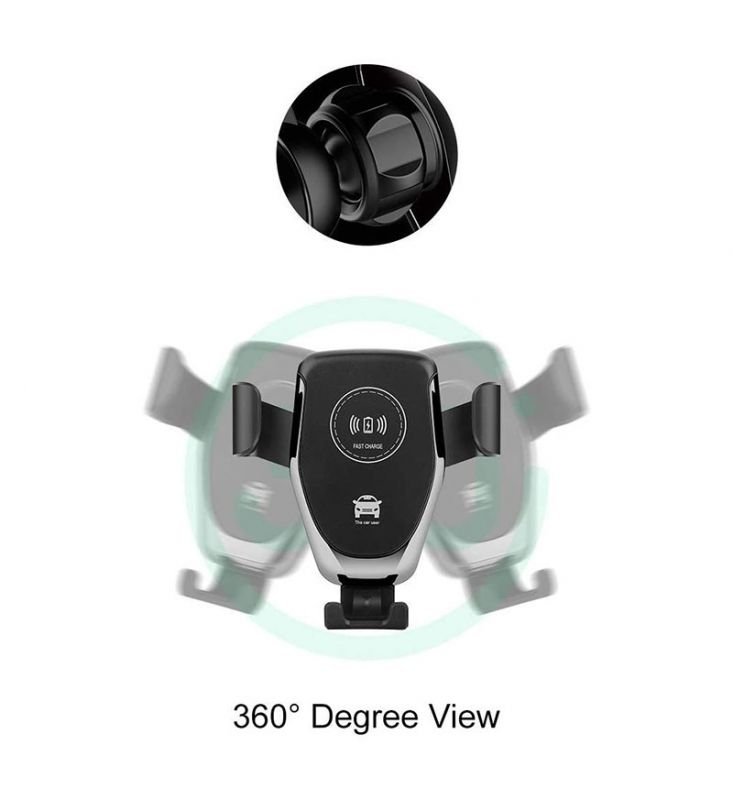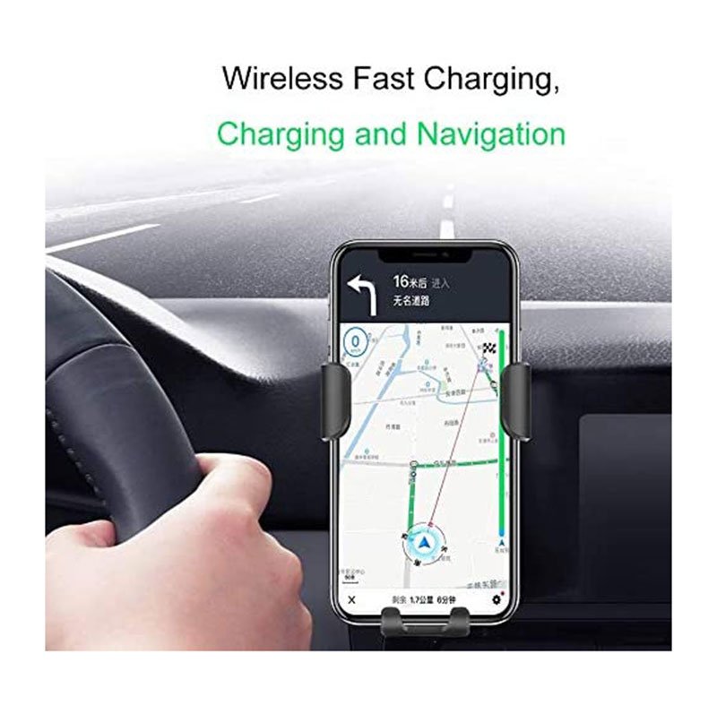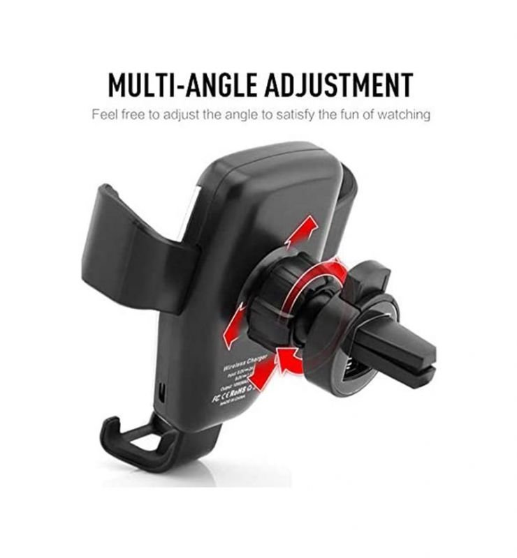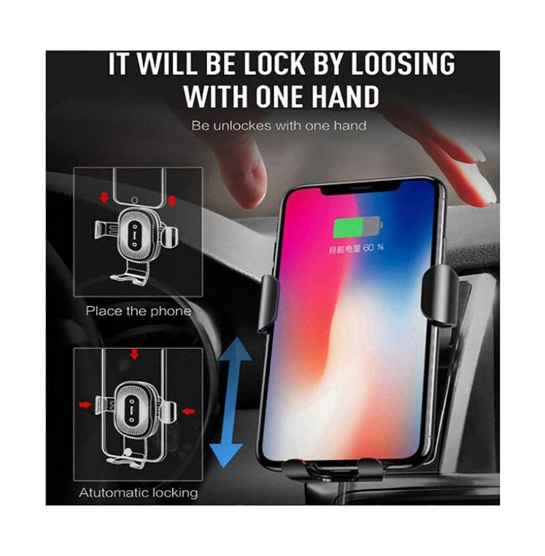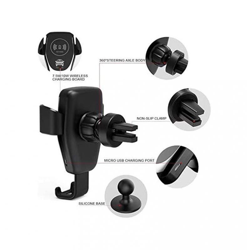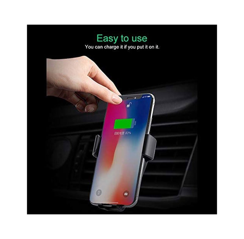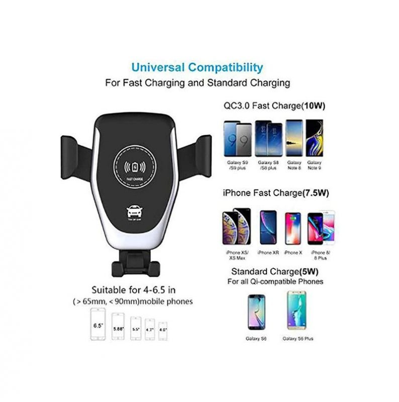 شاحن لاسلكي وحامل للهاتف متوافق مع السيارة متوافق مع جميع الهواتف التى تشحن لاسلكي – PT01 – أسود