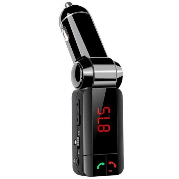 شاحن وجهاز ارسال موجات اف ام ومشغل ام بي 3 للسيارات مع 2 منفذ يو اس بي بتقنية كوالكوم للشحن السريع ومدخل صوت AUX وتشغيل الصوتيات عن طريق USB والرد علي المكالمات