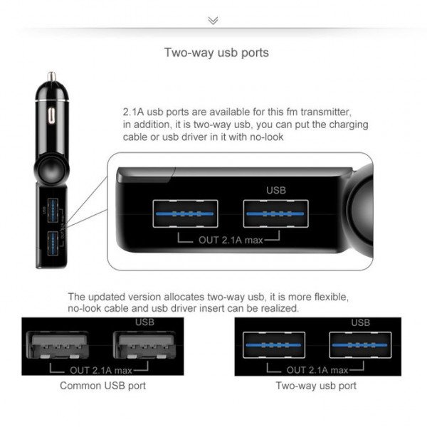 دعم USB شحن التعرف الذكي حيث يمكنك ادخال كابل الشحن على اي اتجاه دون العناء وانت على الطريق السريعة