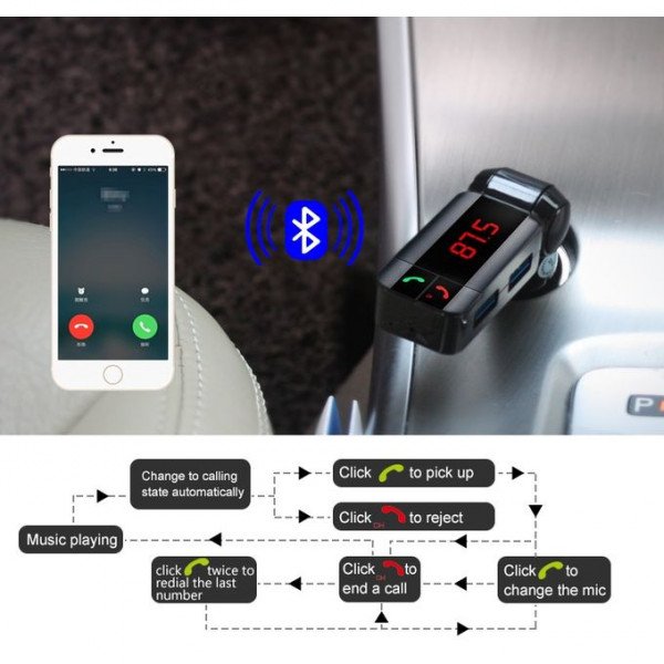 شاحن وجهاز ارسال موجات اف ام ومشغل ام بي 3 للسيارات مع 2 منفذ يو اس بي والرد على الهاتف