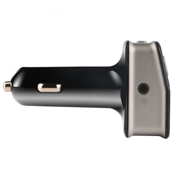 شاحن وجهاز ارسال موجات اف ام ومشغل ام بي 3 للسيارات مع 2 منفذ يو اس بي بتقنية كوالكوم للشحن السريع ومدخل صوت AUX وتشغيل الصوتيات عن طريق USB والرد علي المكالمات لون أسود