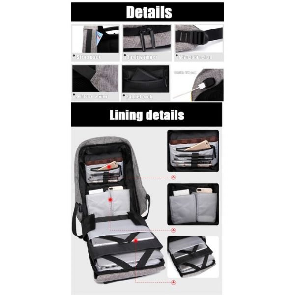 شنطة ظهر ريمان لللاب توب ضد السرقة والماء مع منفذ شحن USB