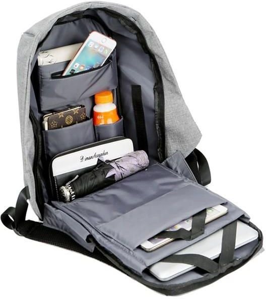شنطة ظهر ريمان لللاب توب ضد السرقة والماء مع منفذ شحن USB لون رمادي