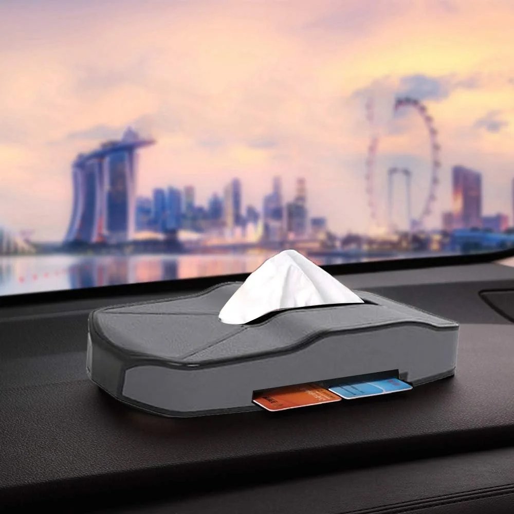 علبة مناديل من الجلد للسيارة او المنزل / موديل JJB10 – لون رمادي