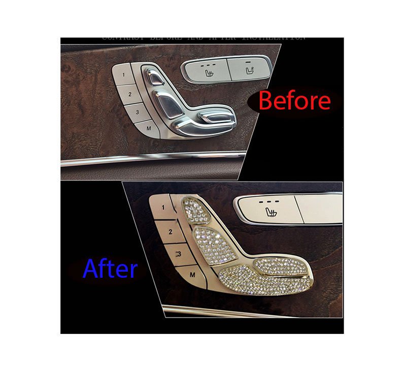 غطاء أزرار التحكم بمقعد السيارة لمرسيدس New E Class 2016-2019 / لون ذهبي ( 8 قطع )