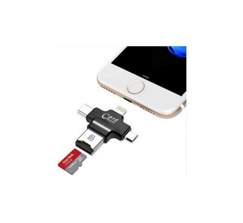 قارئ بطاقة الذاكرة ومحول 4 في 1 متوافق مع اندرويد / ايفون/اي باد/ ماك بوك / لاب توب – أسود