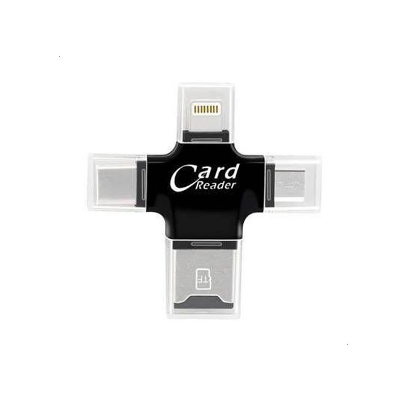 قارئ بطاقة الذاكرة ومحول 4 في 1 لايتنج / يو اس بي 3 / ميني يو اس بي / ميكرو كارت / متوافق مع اندرويد / ايفون/اي باد/ ماك بوك / لاب توب