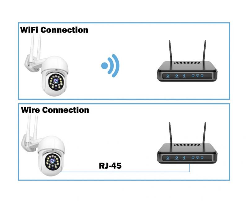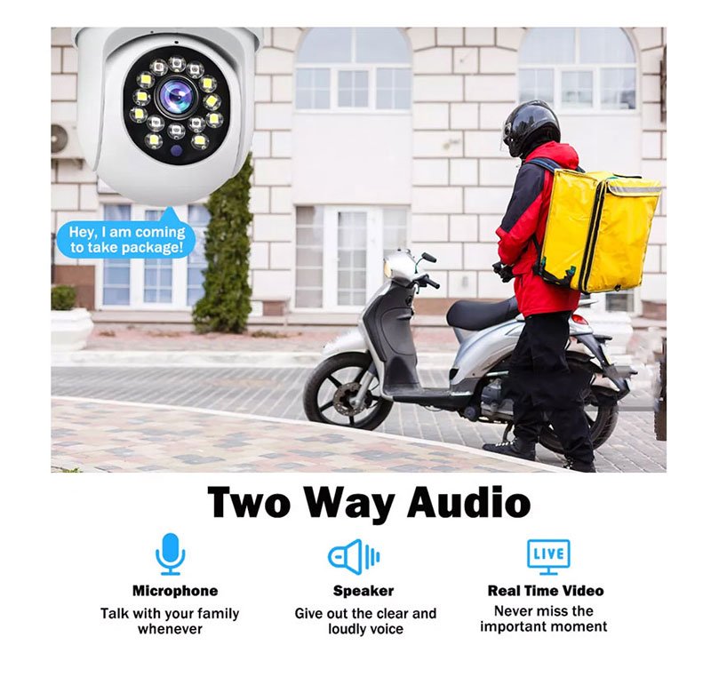 كاميرا لاسلكية وسلكية مع ميكروفون ومكبر صوت بها حيث يمكن التحدث الي الأشخاص المتواجدون في المكان