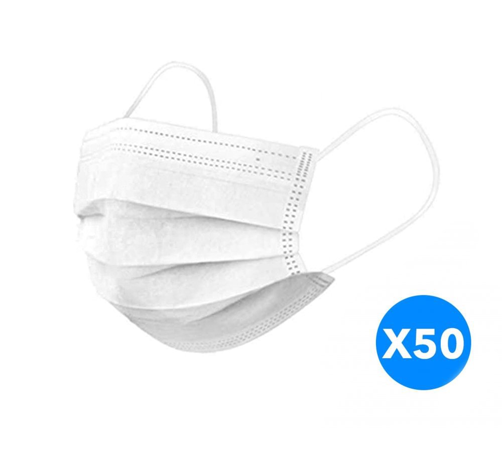 كمامة طبية عالية الجودة – ثلاث طبقات – 50 قطعة – لون أبيض