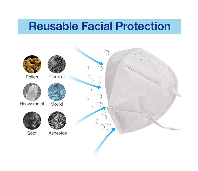 تم تصميم هذه الكمامة للاستخدام ضد اتنقال العدوى والفيروسات او الرزاز الناتج عن الطحن ، أو الصنفرة ، أو الكنس ، أو النشر ، أو التعبئة ، أو غيرها من عمليات الغبار