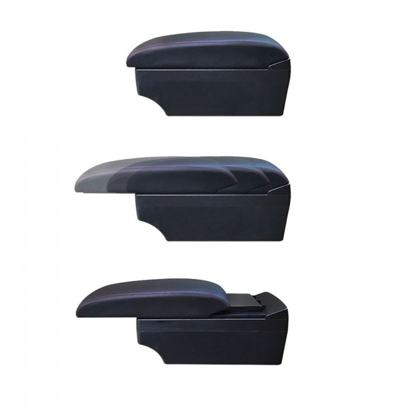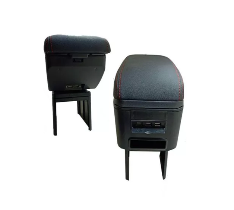كونسولة جلد بها مسند يد للسيارة بمستويين لراحة اليد أثناء القيادة و لتخزين الأغراض وتحتوي علي خمس مخارج (يو اس بي ) مناسبة لجميع السيارات / موديل CON-05 – لون اسود X خط احمر