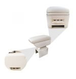 كونسولة ومسند يد للسيارة جلد مستويين لتخزين الأغراض وثلاث مخارج يو اس بي خلفية مستويات مختلفة لراحة اليد اثناء قيادة السيارة مناسب لجميع السيارات لون بيج