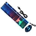 كيبورد وماوس جيمنج سلكي بمنفذ يو اس بي عربي انجليزي يعطي اضاءات مختلفة ملائم ومريح للعين / موديل F92