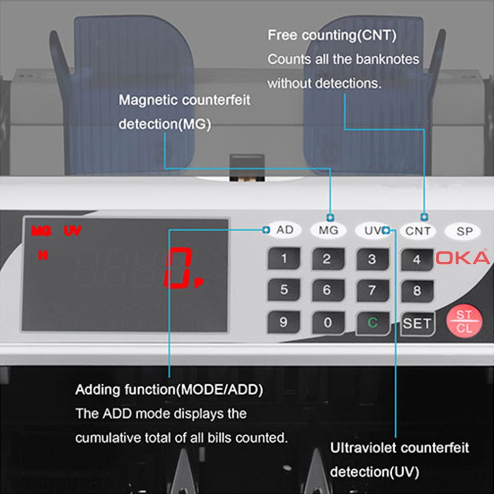 ماكينة عد النقود وكشف النقود من OKA – شاشة رقمية خارجية / موديل 6006