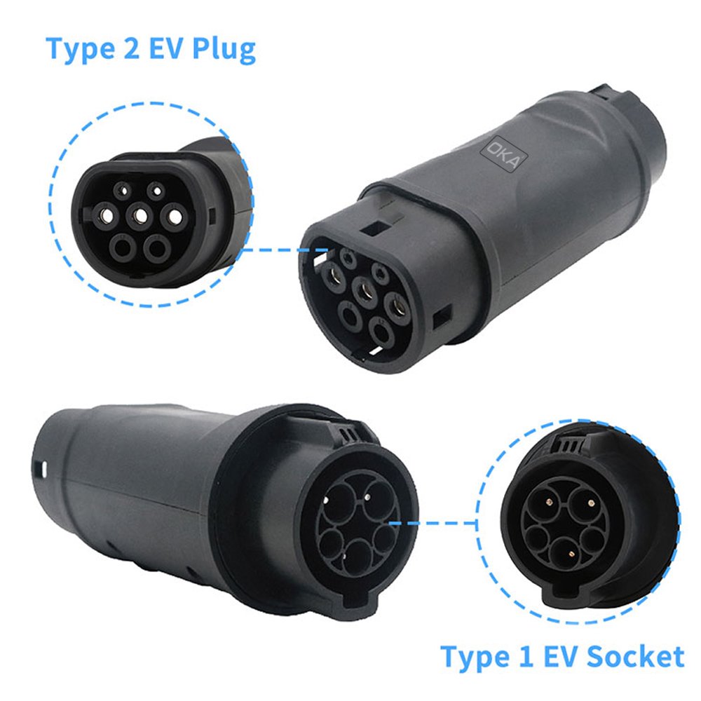 اوكا محول شحن سيارات كهربائية من بروتوكول Type 1 الامريكي و الياباني إلى Type 2 الاوروبي / موديل ( T1-T2 )