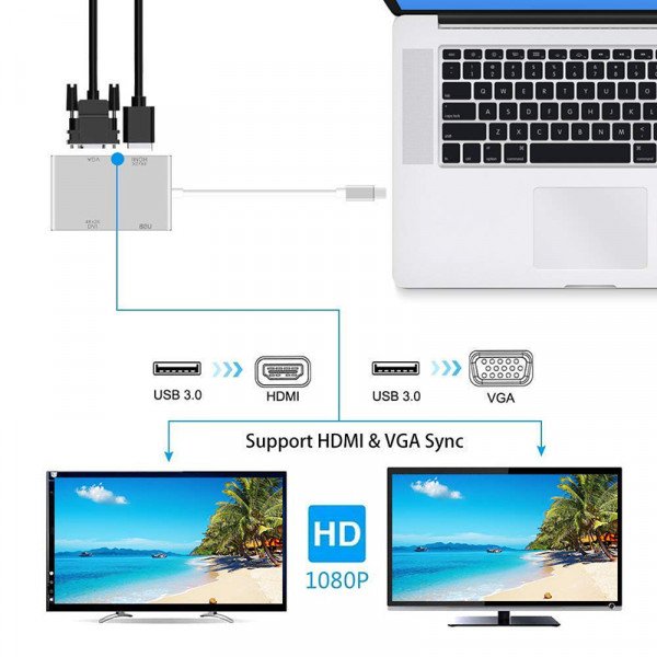 محول من يو اس بي سي الي فيجا / اتش دي ام اي / يو اس بي / دي في اي – جوده 4k