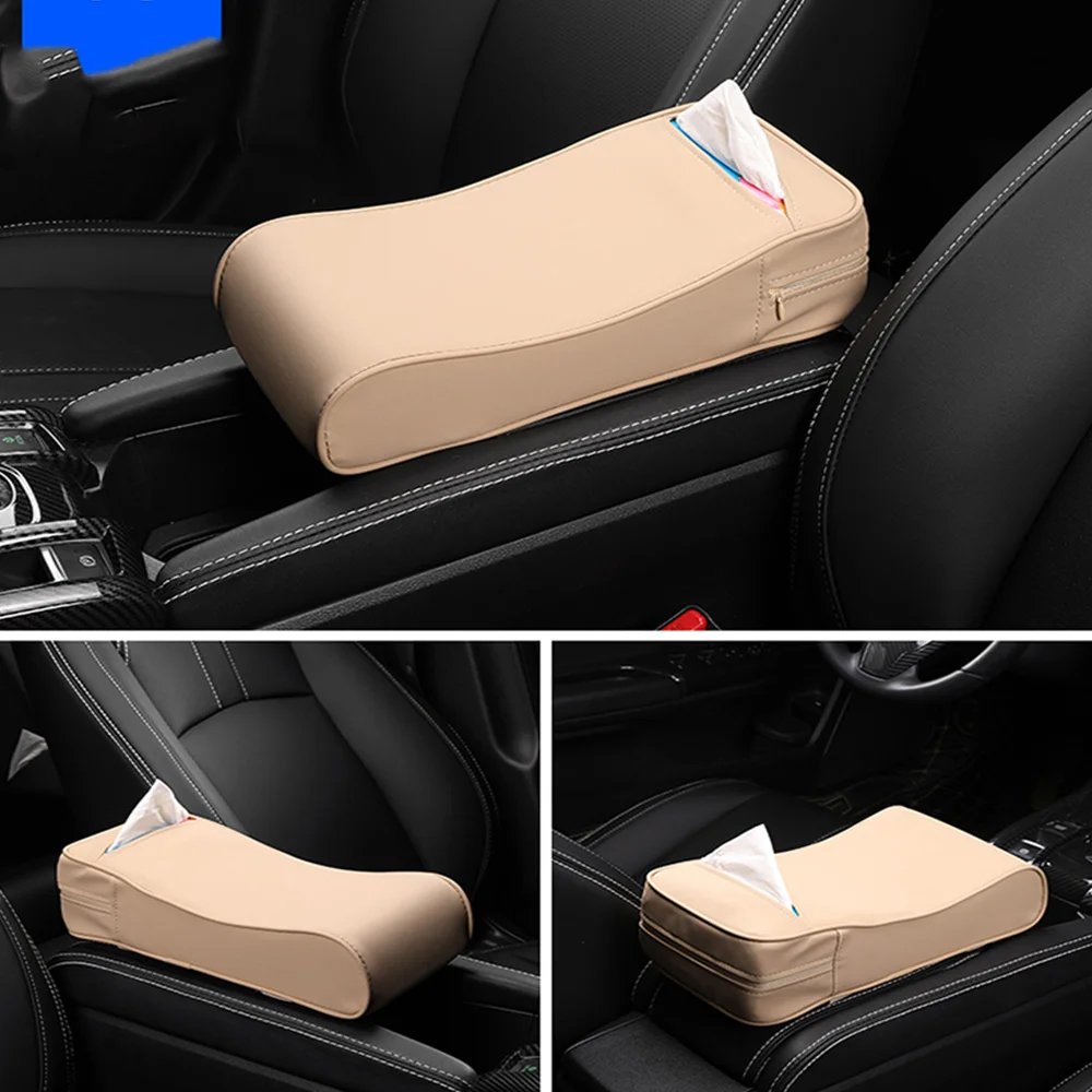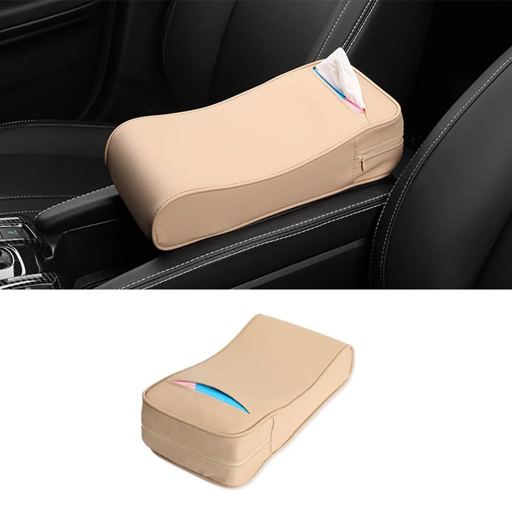 مسند ذراع من الجلد عالي الجودة لراحة اليد اثناء القيادة ومزود بحافظة للمناديل / موديل PPT50 – لون بيچ