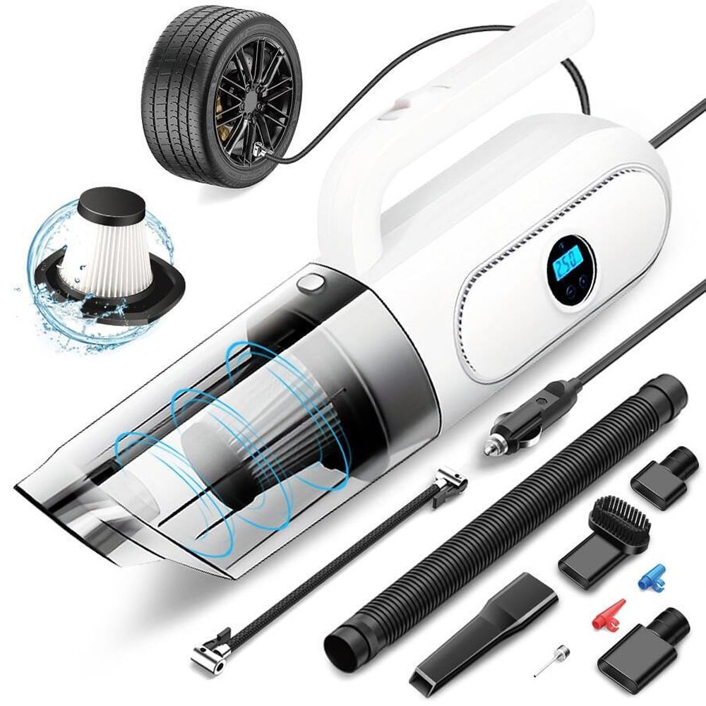 مكنسة كهربائية متعددة الوظائف للسيارة – 4 في 1 12V – 2000mAh – 10000Pa – 120W/ موديل A3 – لون ابيض