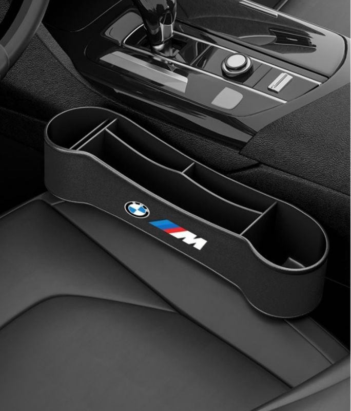 منظم جانبي لمقعد السيارة من قطعتين وحامل أكواب متعدد الوظائف مناسب لسيارات بي ام دبليو – CSB – اسود