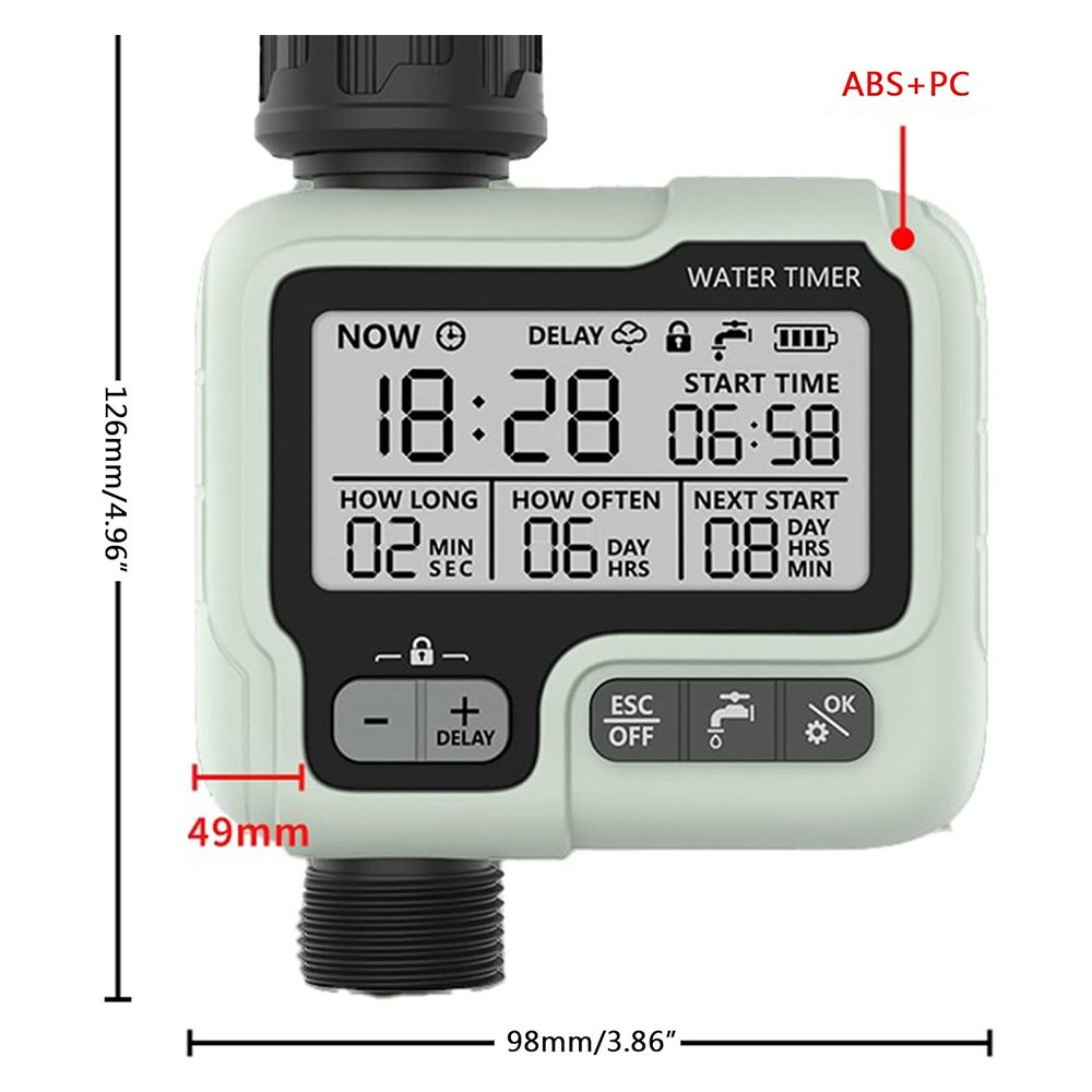 يحتوي مؤقت الرش على شاشة LCD كبيرة مشرقة وحيوية وسهلة القراءة.