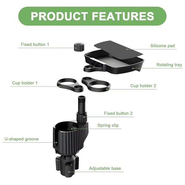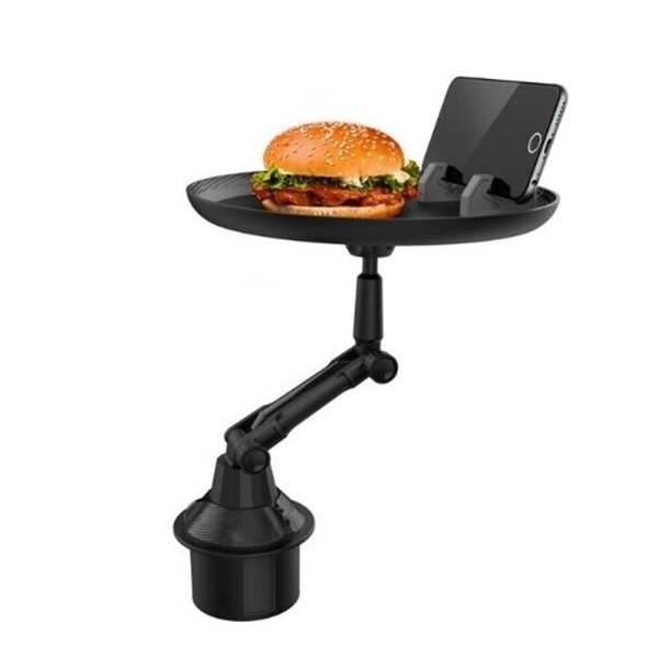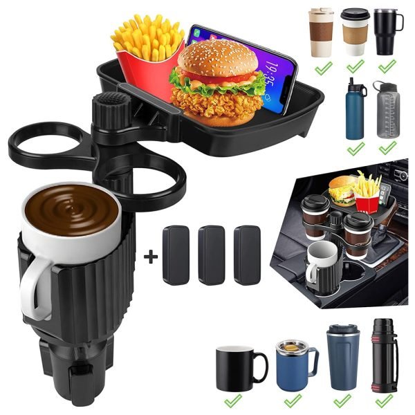 Car cup holder with a detachable rotating food tray in addition to 2 small cup slots / Model CUP-B05
