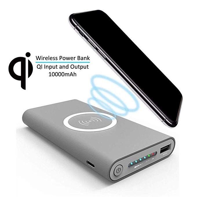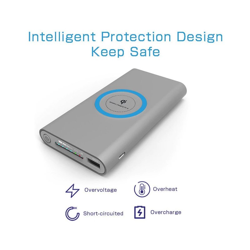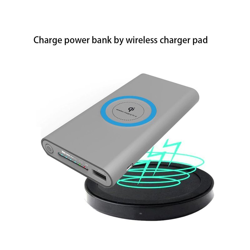 Qi Power Bank 10000mAh Wireless Charger Fast Charging for iPhone and Samsung Phone Gray Color