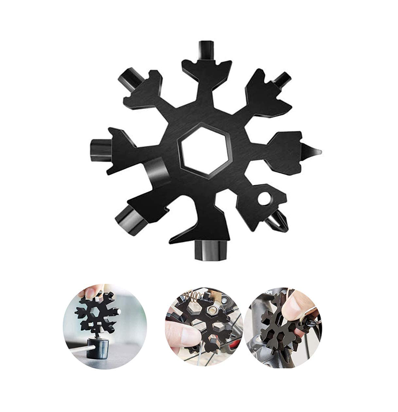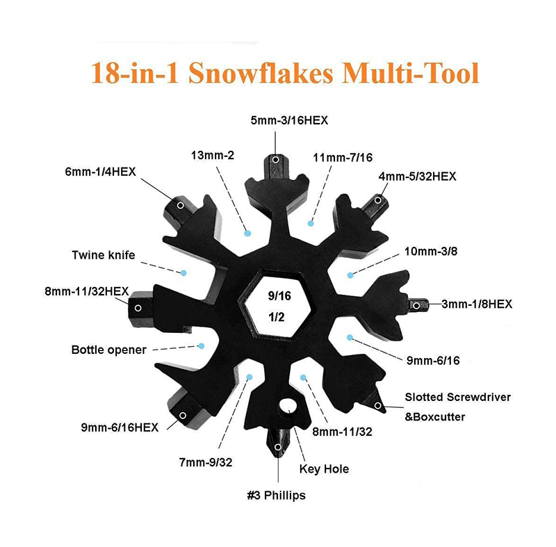 18-in-1 Snowflake Multi-Purpose Snow Window Tool Made of Scratch and Rust Resistant Solid Steel – SPS10 / Black Color