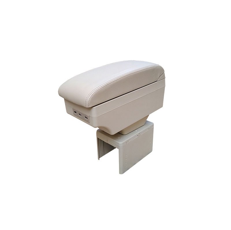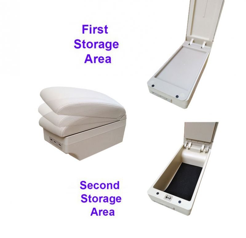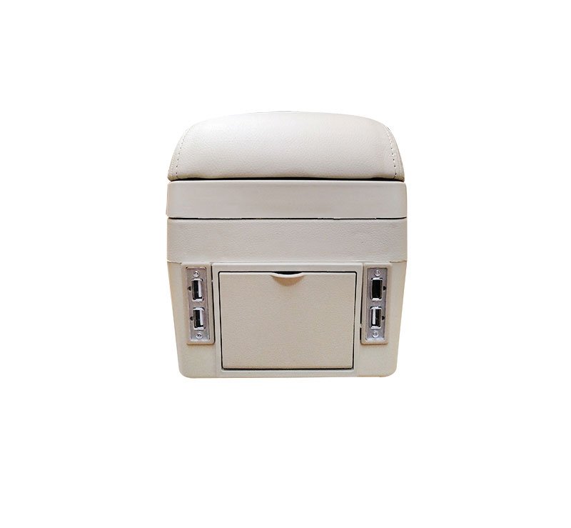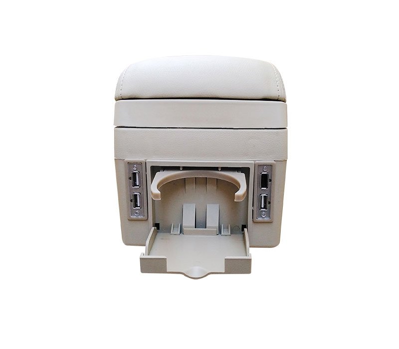 Car Console & Leather armrest two levels for storing things and 4 USB ports & Cup Holder , background, different levels of hand rest while driving, for all cars – CON-03 – Beige