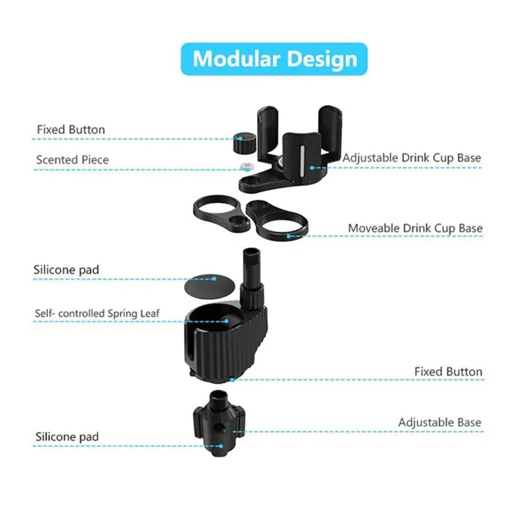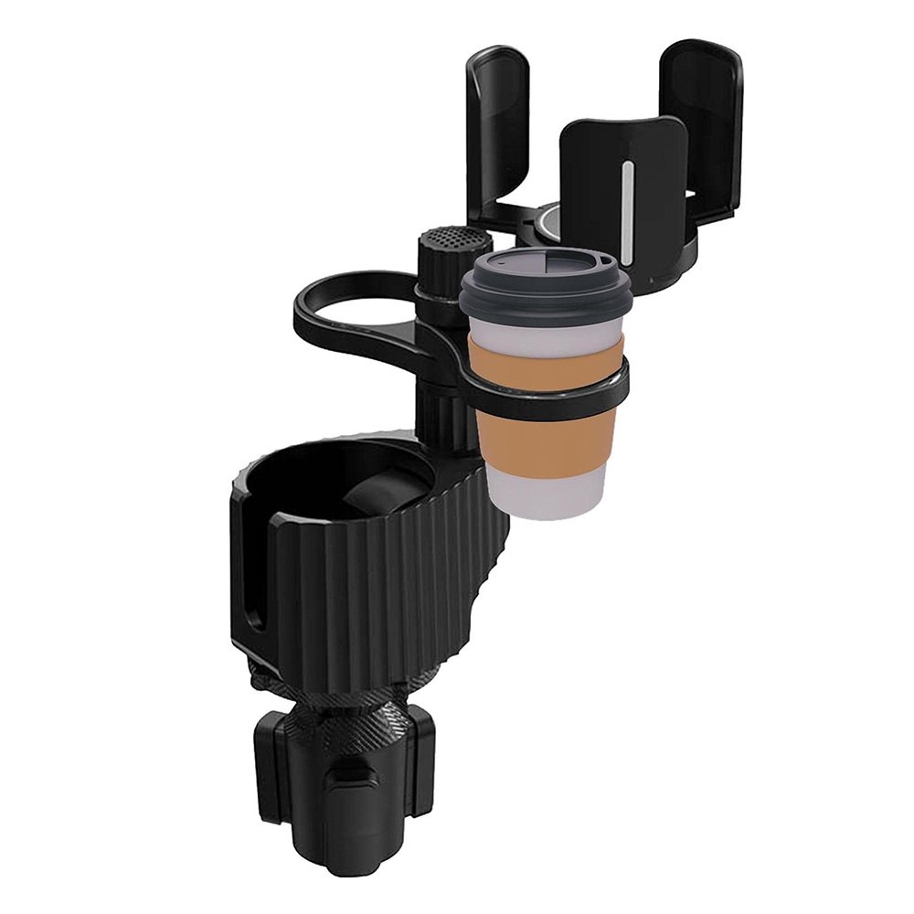 Car cup holder with a detachable rotating food tray in addition to 2 small cup slots and a large cup slot / Model CUP-B03
