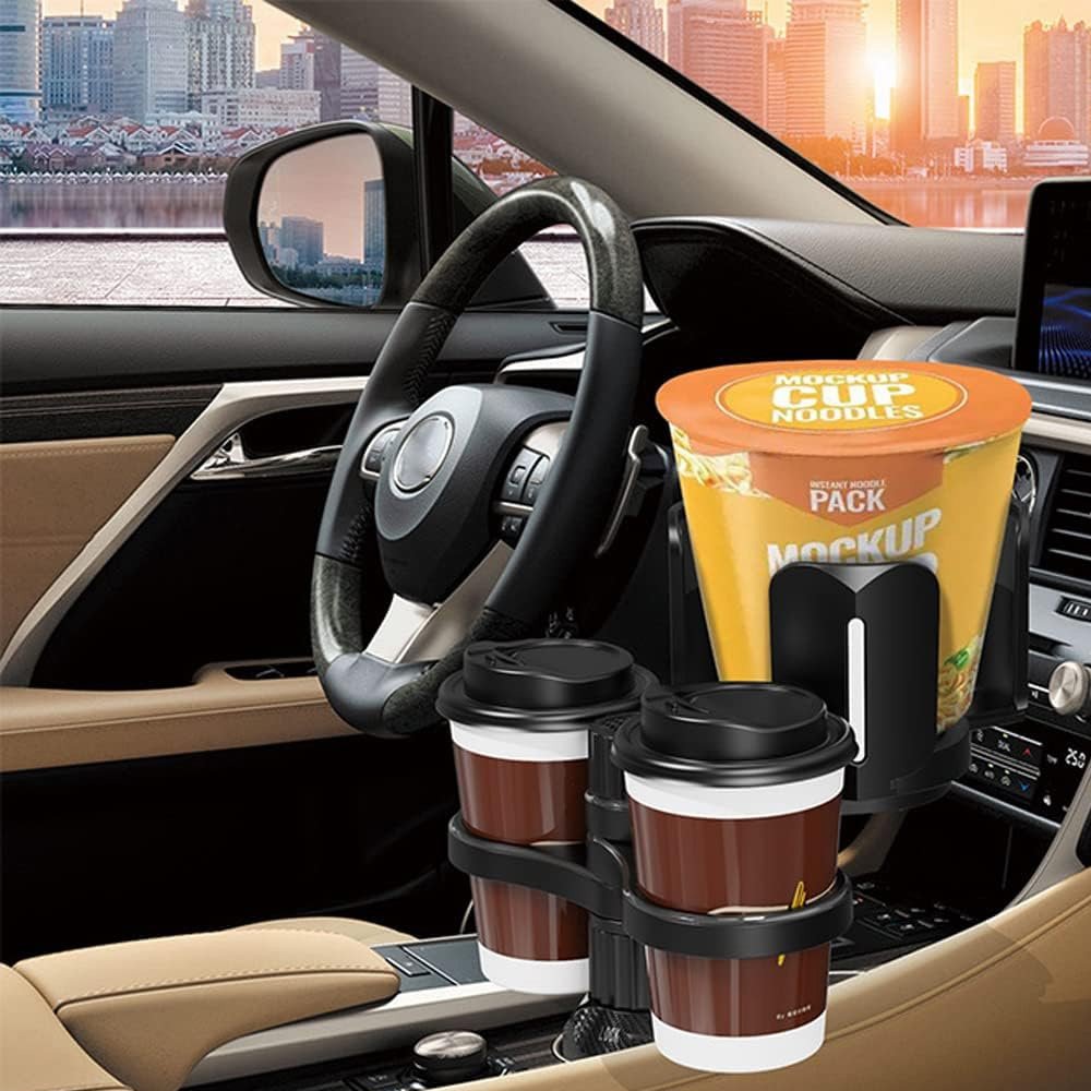 Car cup holder with a detachable rotating food tray in addition to 2 small cup slots and a large cup slot and Holder Mobile / Model CUP-B04