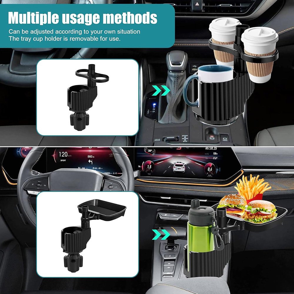 Car cup holder with a detachable rotating food tray in addition / Model CUP-C01