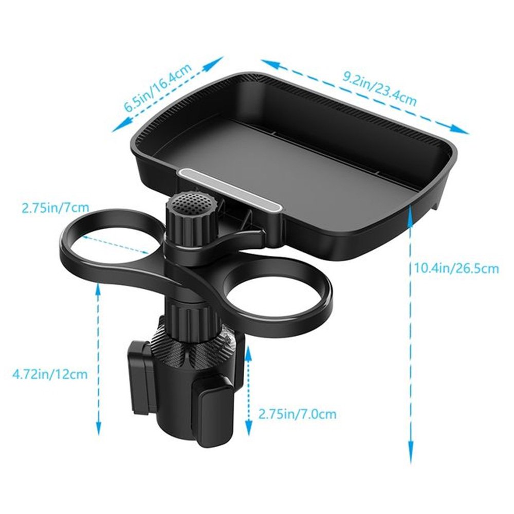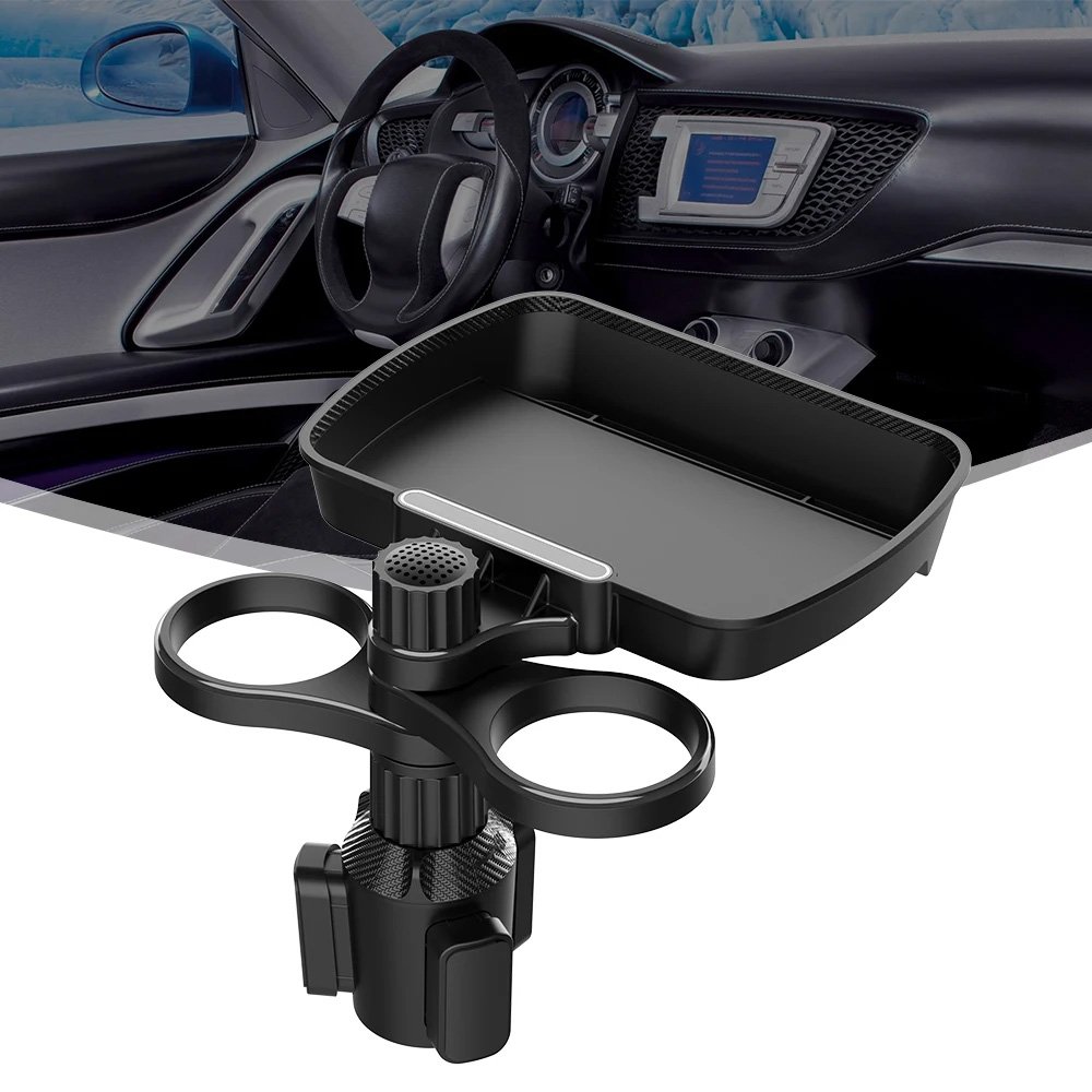 Car cup holder with a detachable rotating food tray in addition to 2 small cup slots / Model CUP-B05