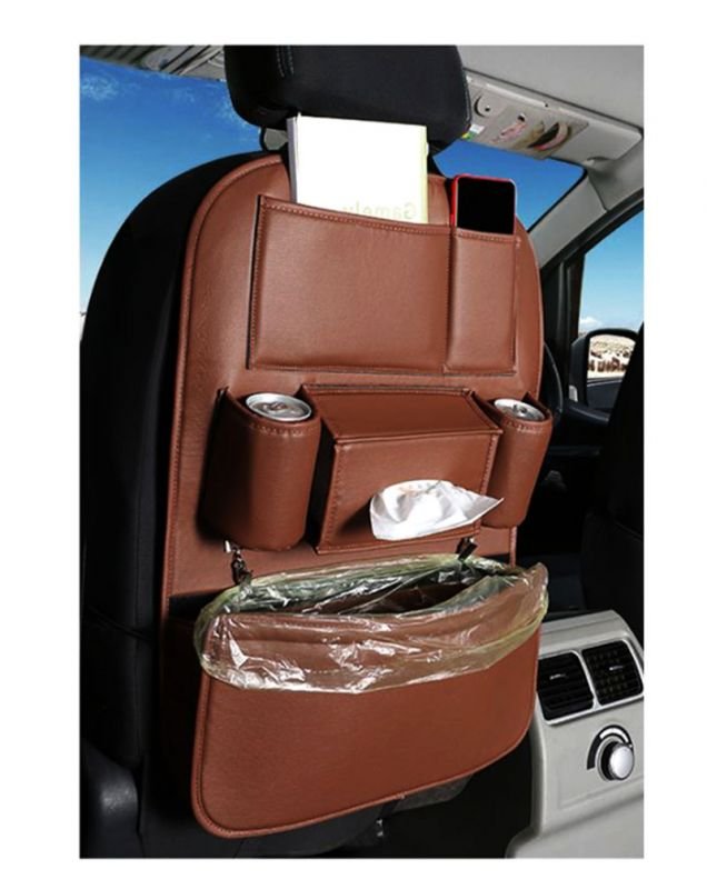 Car Seat Back Storage Organizer Bag Faux Leather Multifunction Organizer Holder Travel Accessories – SCS100 – Brown