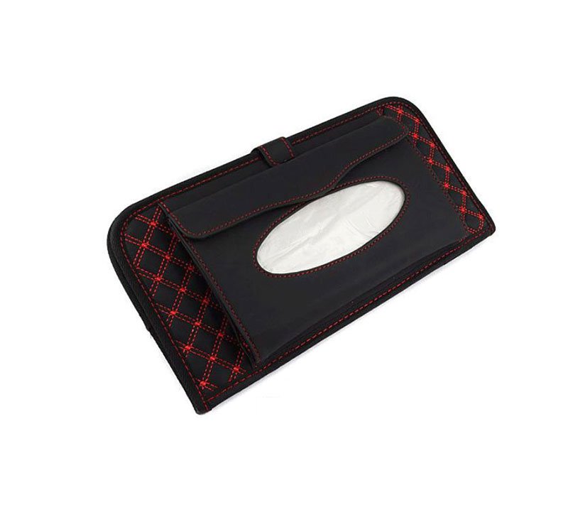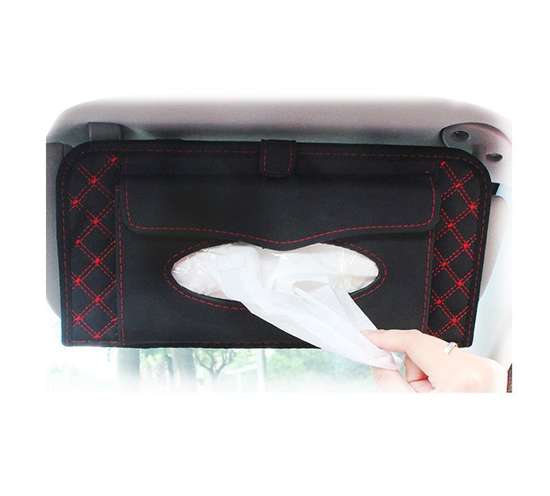 Car Tissue Holder and CD Organizer installed in the car sunshade – AW-12 – Black & Red