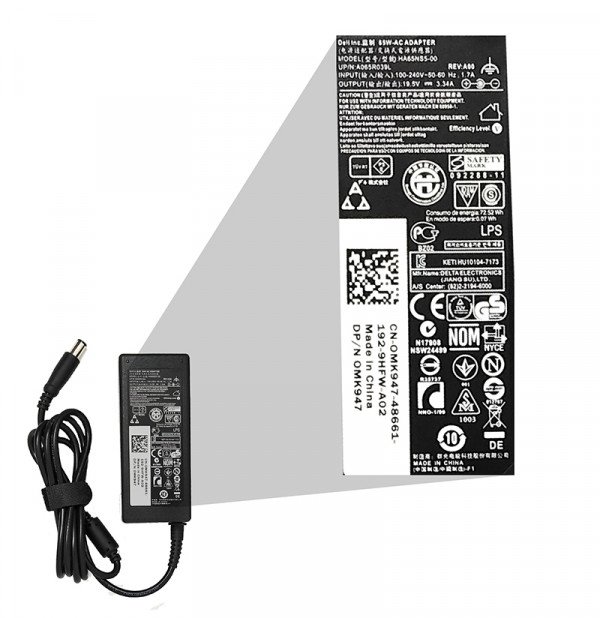 DELL Adapter Power Charger Laptop High Quality 19.5V 3.34A – 65W-DC size 7.4*5.0 mm