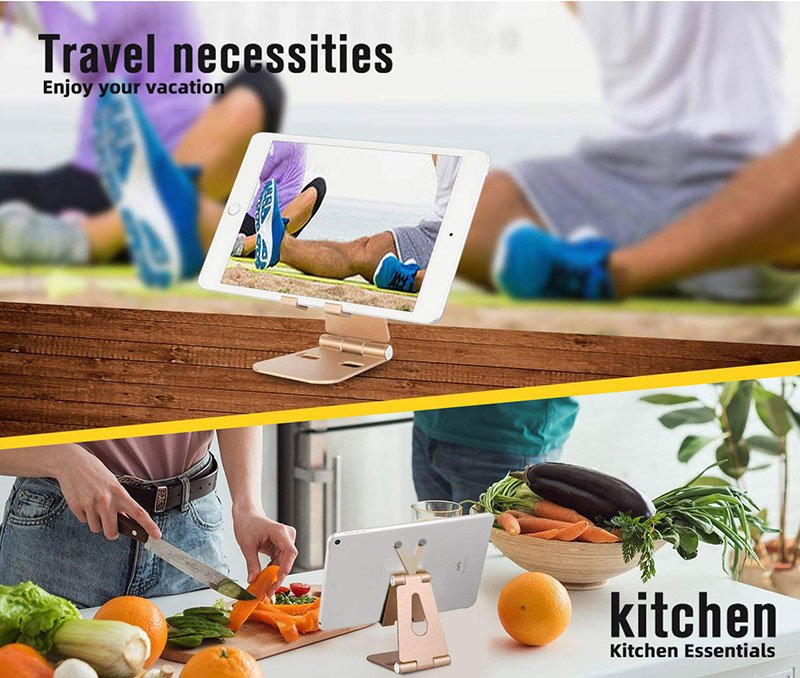 Metal desktop holder for mobile and iPad, foldable and adjustable in all directions