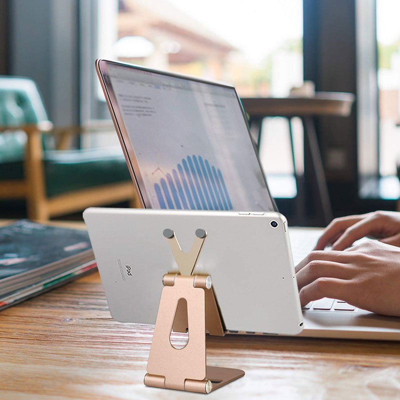 Desktop Stand For Mobile & iPad Foldable & Adjustable – B18 – Gold