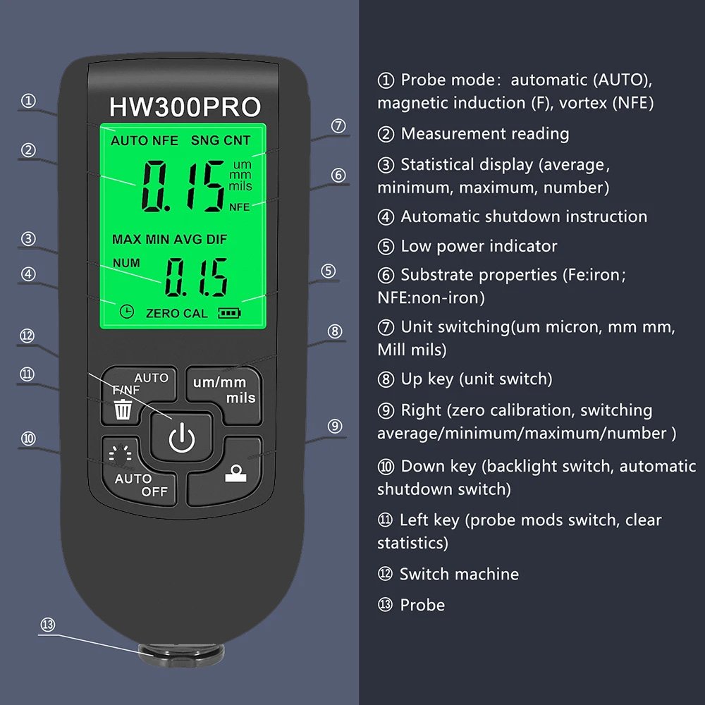 Digital car paint thickness gauge high quality / Model HW-300PRO – Black Color